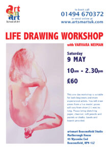 Join one of Varvara’s Life Drawing Workshops on Saturday’s, 10am – 2:30pm, book via artsmart Beaconsfield Old Town HP9 1LZ