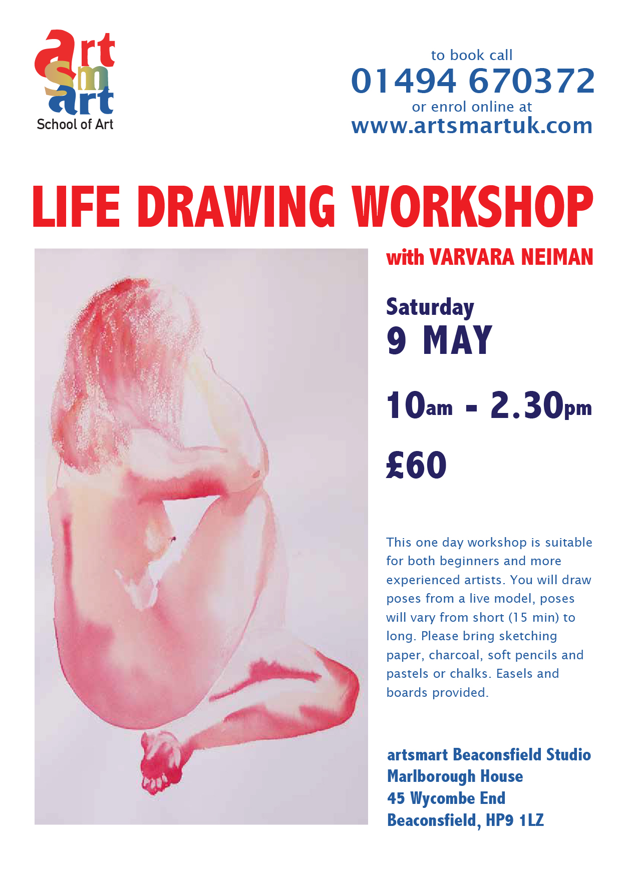 Join Varvara’s Life Drawing Workshop on Saturday 21 March, 10am – 2:30pm, book via artsmart Beaconsfield Old Town HP9 1LZ